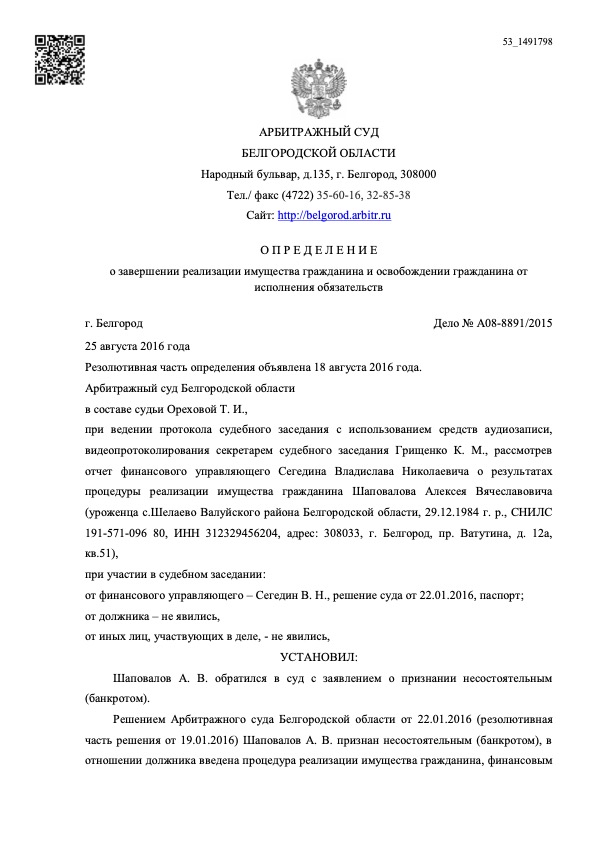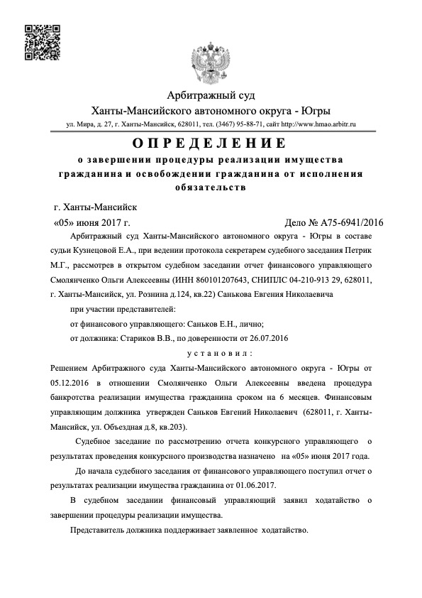 Я обратился в компанию «Лига Банков», они изучили мою финансовую ситуации и запустили процедуру банкротства. В итоге долг полностью списали по решению суда. Это очень мне помогло, так как больше не давил долг перед банком.
