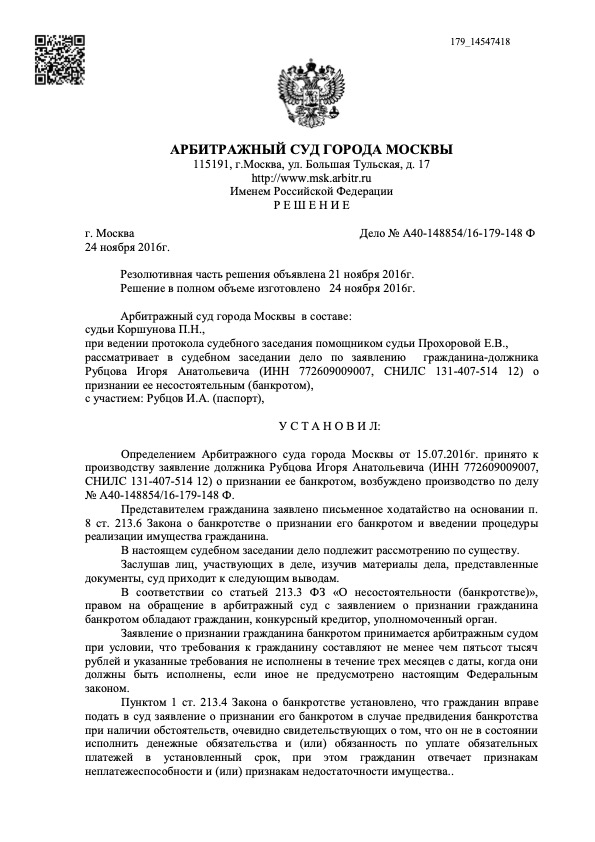 Есть ли у вас успешные процедуры банкротства жителей города Москва? Знаете ли вы специфику работы судов города?